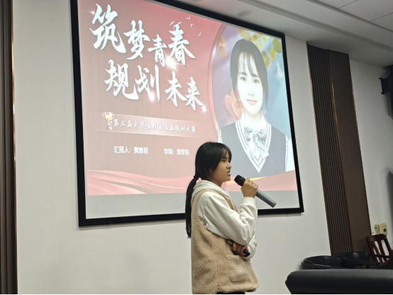 比赛伊始,吴征兵详细介绍赛事规则及评分标准,本次大赛严格参照省级赛事标准设置,设有“成长赛道”与“就业赛道”两大主体赛道,分别对应不同年级学生的职业发展需求。在成长赛道环节,参赛选手围绕职业目标确立、学习实践行动、动态优化改进等核心评审维度展开汇报,清晰呈现了将个人理想与国家需要、行业发展相结合的职业规划,通过具体实践案例展现了自身综合素质与专业能力的逐步提升过程。随后的就业赛道环节中,参赛选手聚焦职业目标契合度、岗位胜任力与发展潜力三大评审指标进行陈述,通过求职简历、实践证明等材料,全面展示了自身在目标岗位所需专业技能、综合素质及实习实践经历。评委老师结合选手陈述、现场表现和真实工作场景中可能遇到的问题进行提问。最后,陈超副书记对参赛选手的精彩表现给予充分肯定,强调职业规划是大学生成长成才的重要基石,希望同学们以本次大赛为契机,树立正确的择业就业观,科学规划学业与职业发展路径。