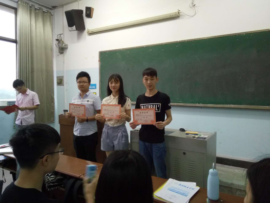 7月1日上午,由湖南城市学院教务处主办、6163银河net163am承办的湖南城市学院第九届大学生数学竞赛颁奖仪式在二教222和三教108举行。全校共有311名学生参加了本次比赛,其中数学类专业组46名,非数学类专业组265名。此次竞赛共评出数学类大一组一等奖2名,二等奖3名,三等奖4名;大二大三组一等奖2名,二等奖3名,三等奖5名;非数学类大一组一等奖11名,二等奖27名,三等奖51名;大二大三组一等奖3名,二等奖6名,三等奖9名。
