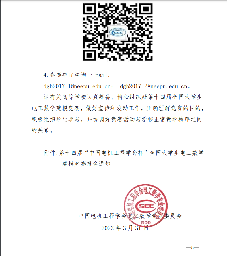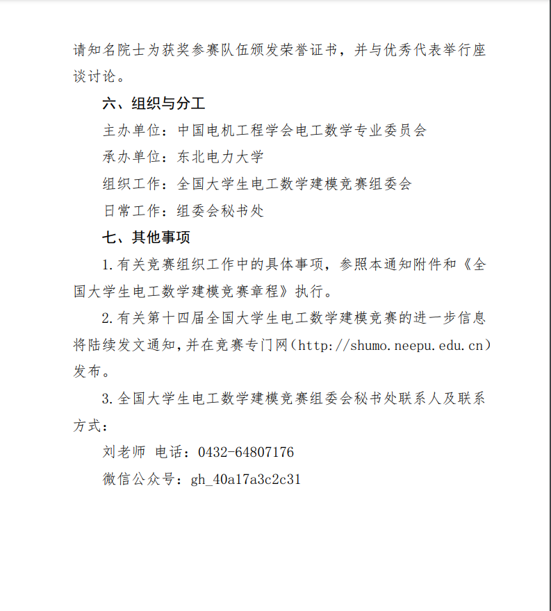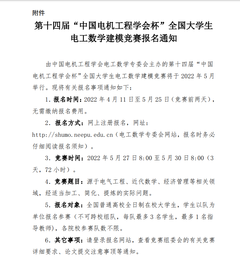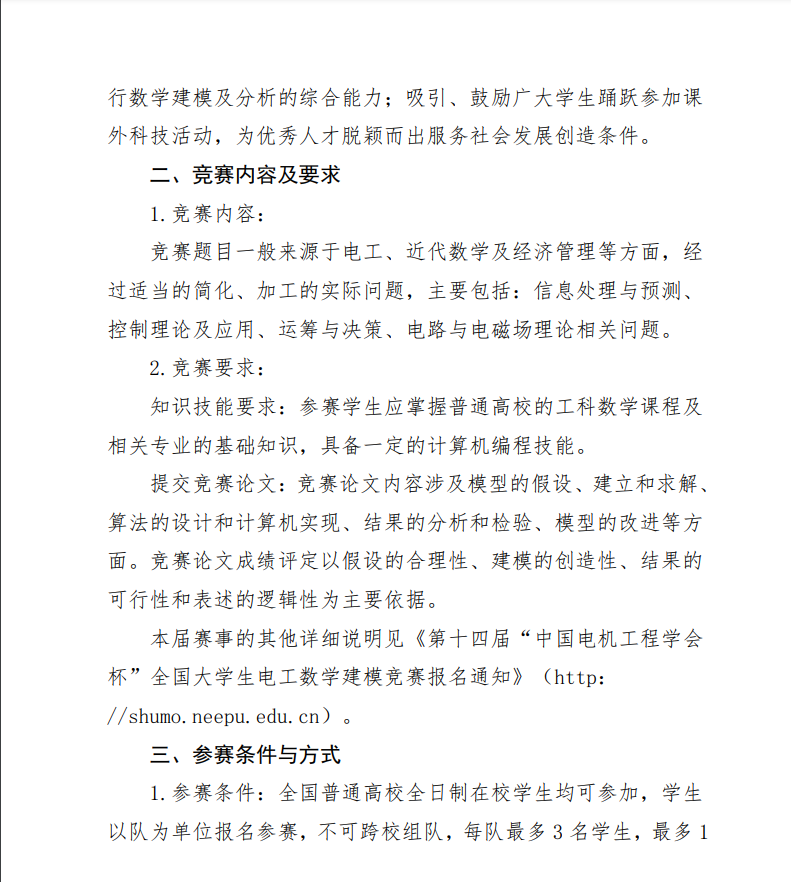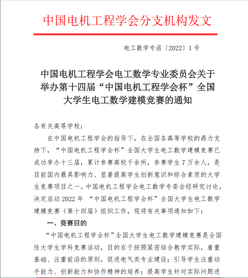 中国电机工程学会电工数学专业委员会关于举办第十四届“中国电机工程杯”全国大学生电工数学建模竞赛的通知