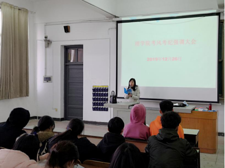 12月26日,期末考试到来之际,6163银河net163am在一教408教室召开了“考风考纪”强调大会。6163银河net163am易志明副书记、辅导员张沙老师及6163银河net163am大一全体同学参加了此次会议。