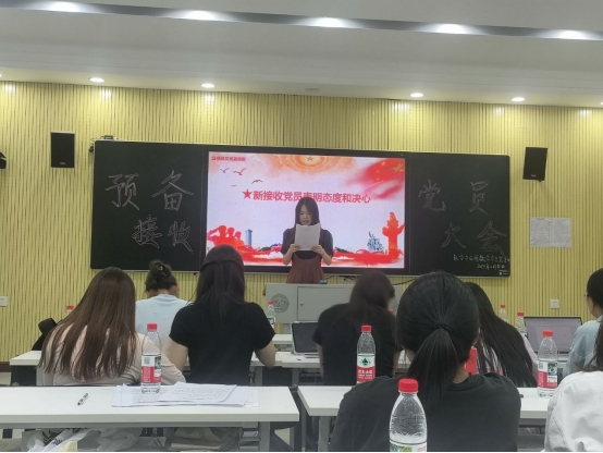会议严格按照党组织接收预备党员的规范流程有序开展。会议开始,各位发展对象依次汇报个人在思想、学习、工作、生活等方面的情况并宣读了入党志愿。入党介绍人介绍了各位发展对象培养考察期间的表现情况,其他与会党员对申请人进行了充分讨论并充分发表意见,最后进行了投票表决。票决结束后每位预备党员都进行了表态发言,大家表示在今后的学习与工作中会进一步严格要求自己,全力践行党员标准,努力提升自己的党性修养与能力水平。最后支部书记为新接收的预备党员佩戴党徽并进行集体宣誓。