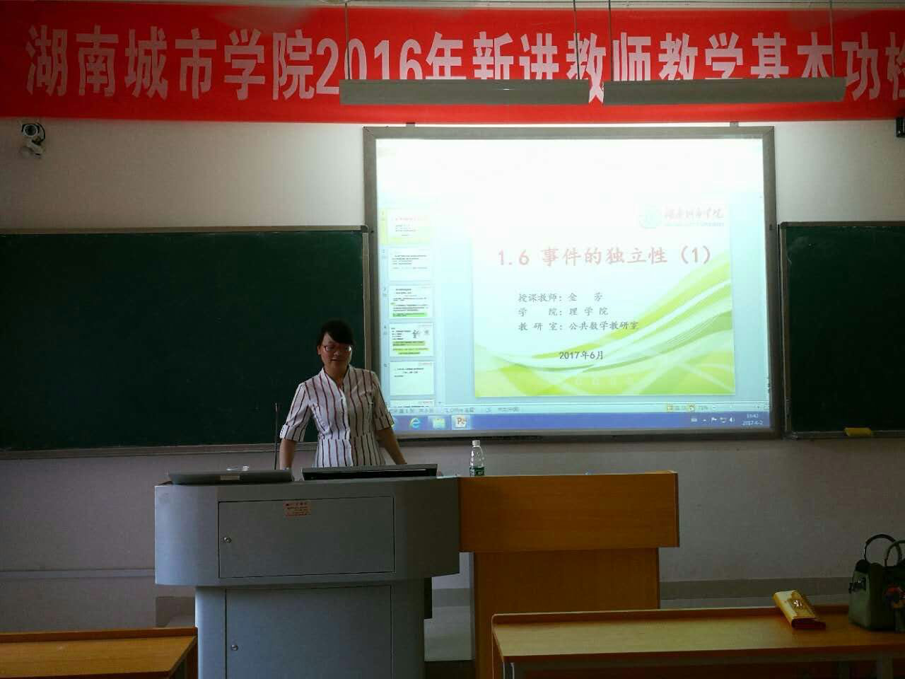 根据《关于举办2017年湖南城市学院教师课堂教学竞赛的通知》(湘城院教通〔2017〕06号)文件精神,163am银河线路娱乐官网青年教师金芳博士积极响应认真准备,在于2017年6月3日举行了湖南城市学院教师课堂教学竞赛决赛中获得理工科组一等奖,并将代表学校参加湖南省普通高校教师课堂教学竞赛复赛。