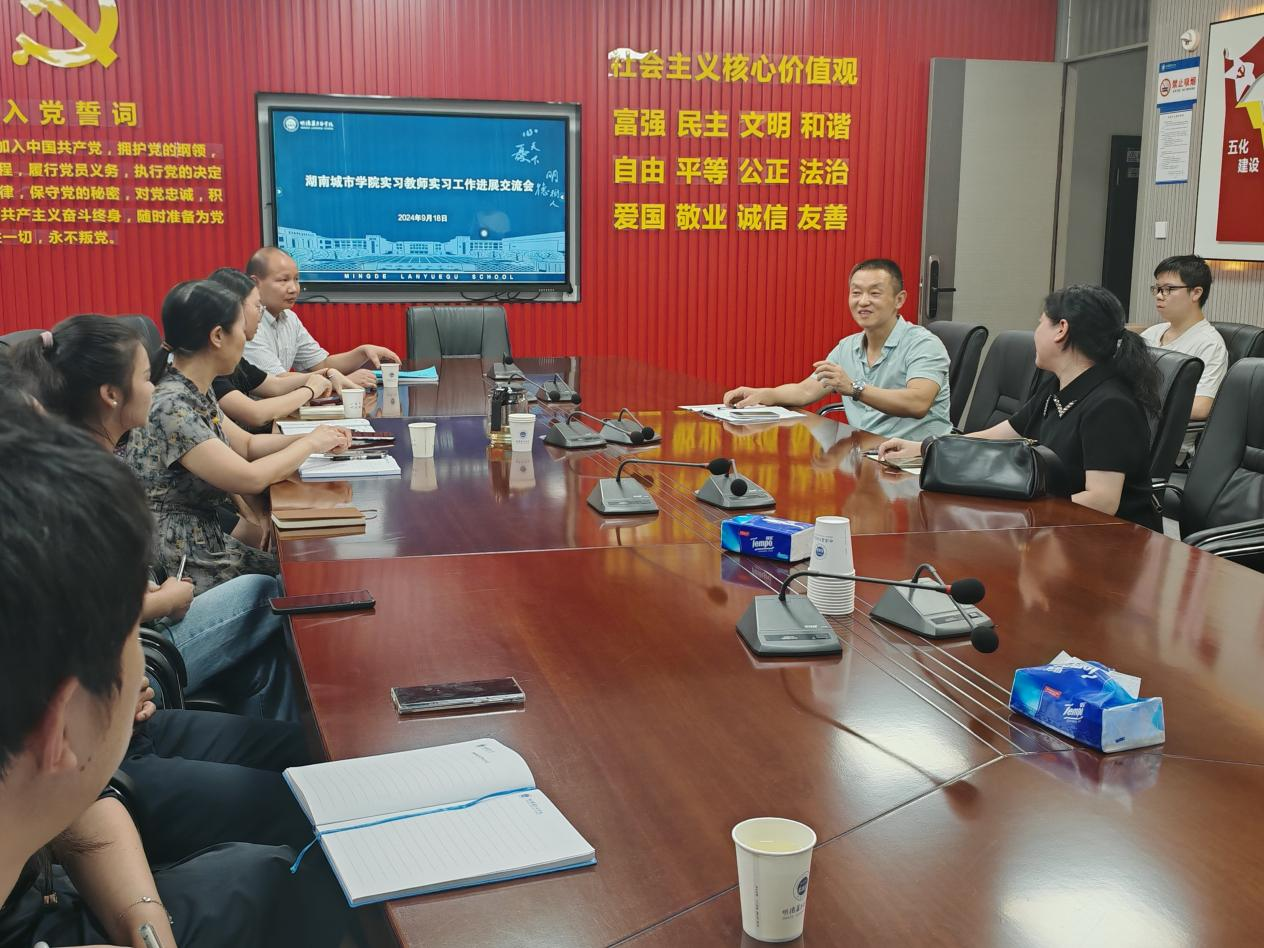 本网讯(通讯员 罗逸平)2024年9月19日,校内实习指导老师李夏云、罗逸平奔赴宁乡蓝月谷教育集团开展实习检查工作,实地了解6163银河net163am实习生工作和生活情况,并就6163银河net163am与蓝月谷学校进一步推动实习管理工作科学化、提高实习生的教学水平等探讨新路径。蓝月谷学校殷妃副校长和初中部教务副主任姜乾等8位老师参加了本次座谈会,6163银河net163am16位实习生一并旁听。