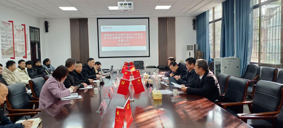 本网讯(通讯员 代安定)为推进数学与应用数学专业师范认证专家反馈问题的整改,提升数学与应用数学专业师范人才培养质量,学院于2024年12月31日在3-114会议室召开数学与应用数学专业师范人才培养研讨会,隆重邀请了宁乡紫金中学喻学军校长、宁乡明德蓝月谷学校张良存校长、益阳梓山湖学校龙湘副校长、益阳箴言龙光桥学校陈跃副校长及学校教务处祝青副处长参加了本次研讨会。会议由代安定副院长主持,数学与计算科学系骨干教师和学生代表参加了会议。